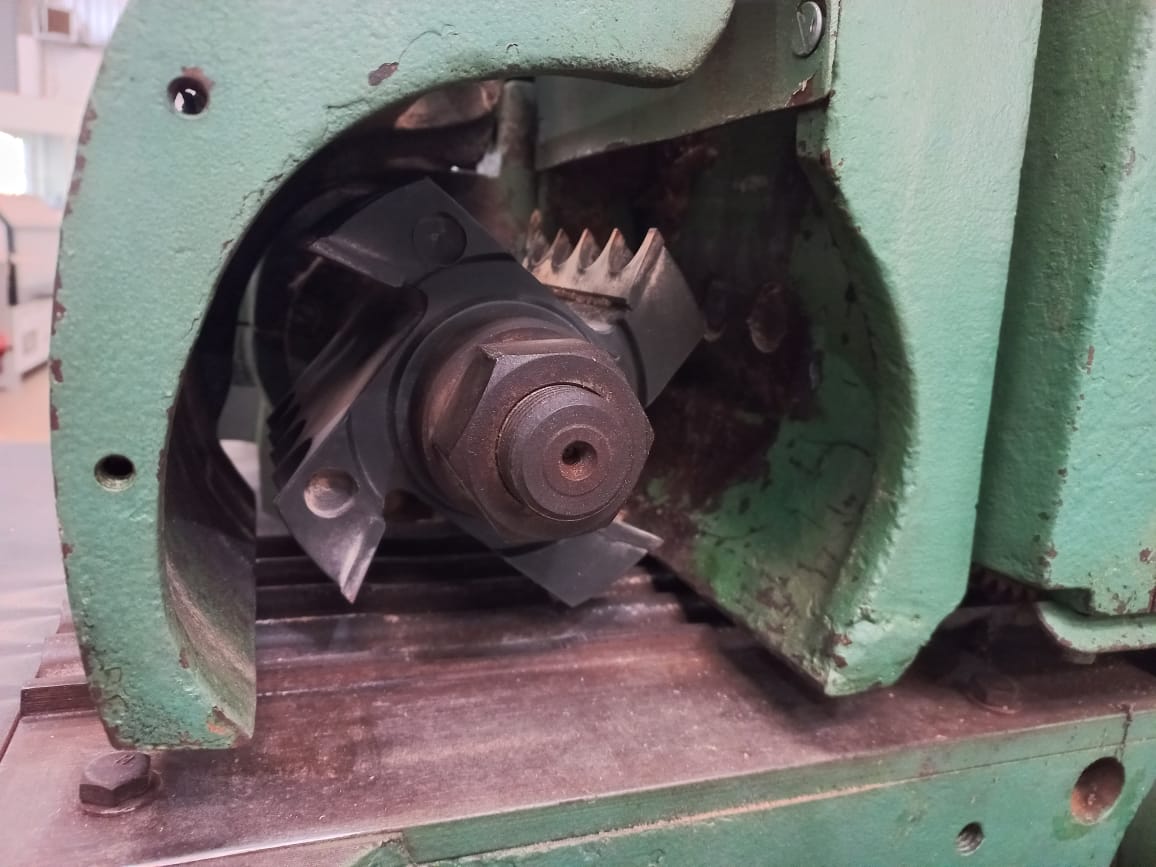 preparada nos eixos horizontais para cabos de vassoura Ø 23 mm, sem os eixos verticais, motorizada, usada.